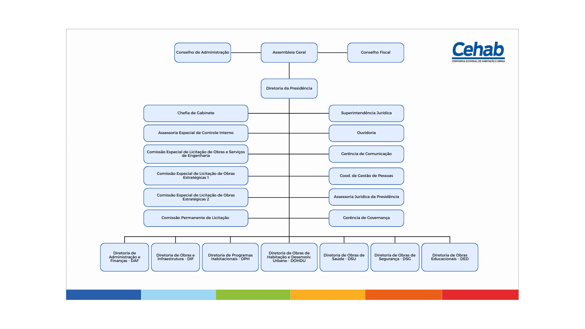 A Companhia Estadual de Habitação (CEHAB) é vinculada a Secretaria de Desenvolvimento Urbano e Habitação - SEDUH através da LEI Nº 18.139, DE 18 DE JANEIRO DE 2023 e tem como base de funcionamento a Lei 13.303/2016.
